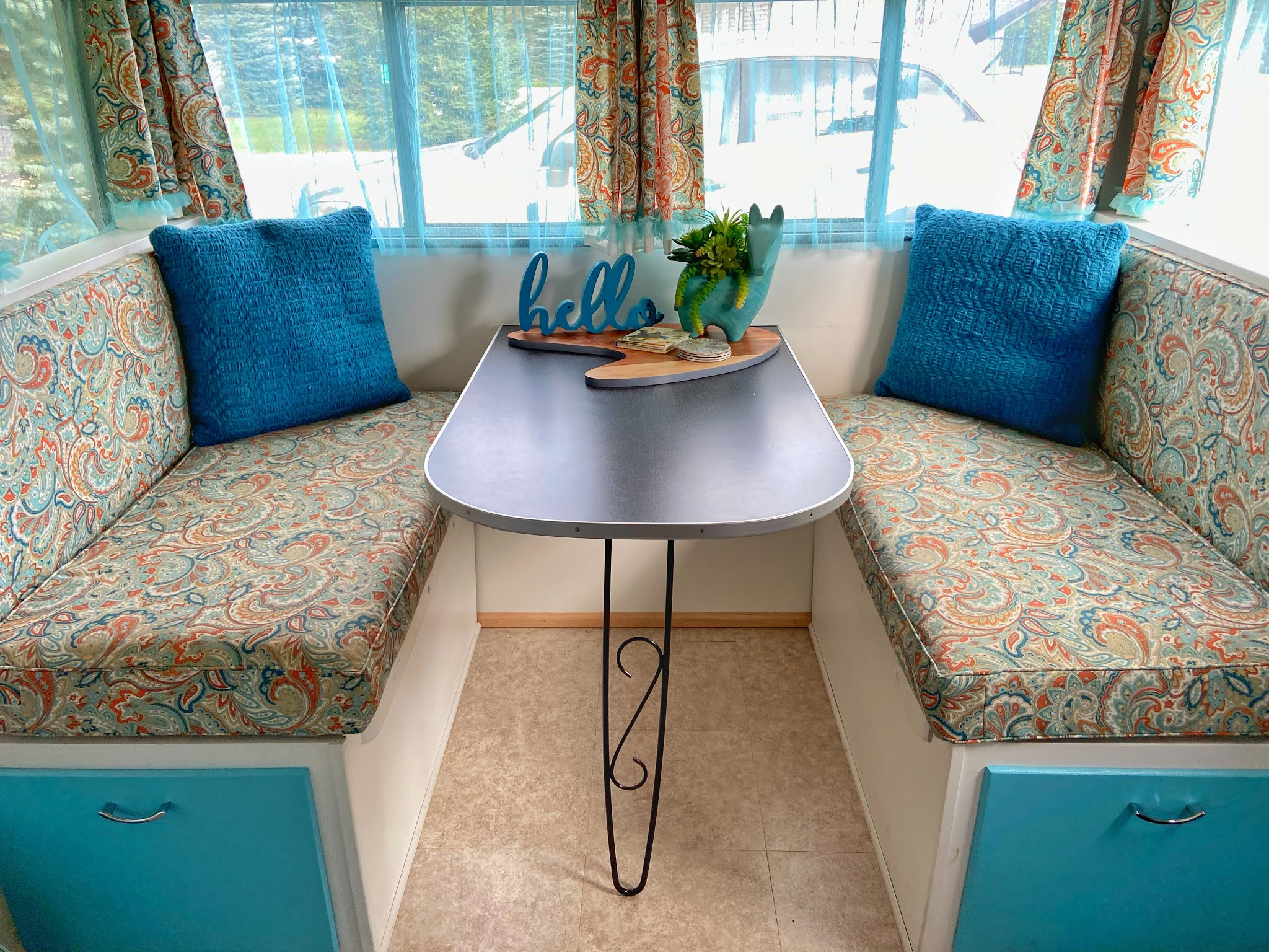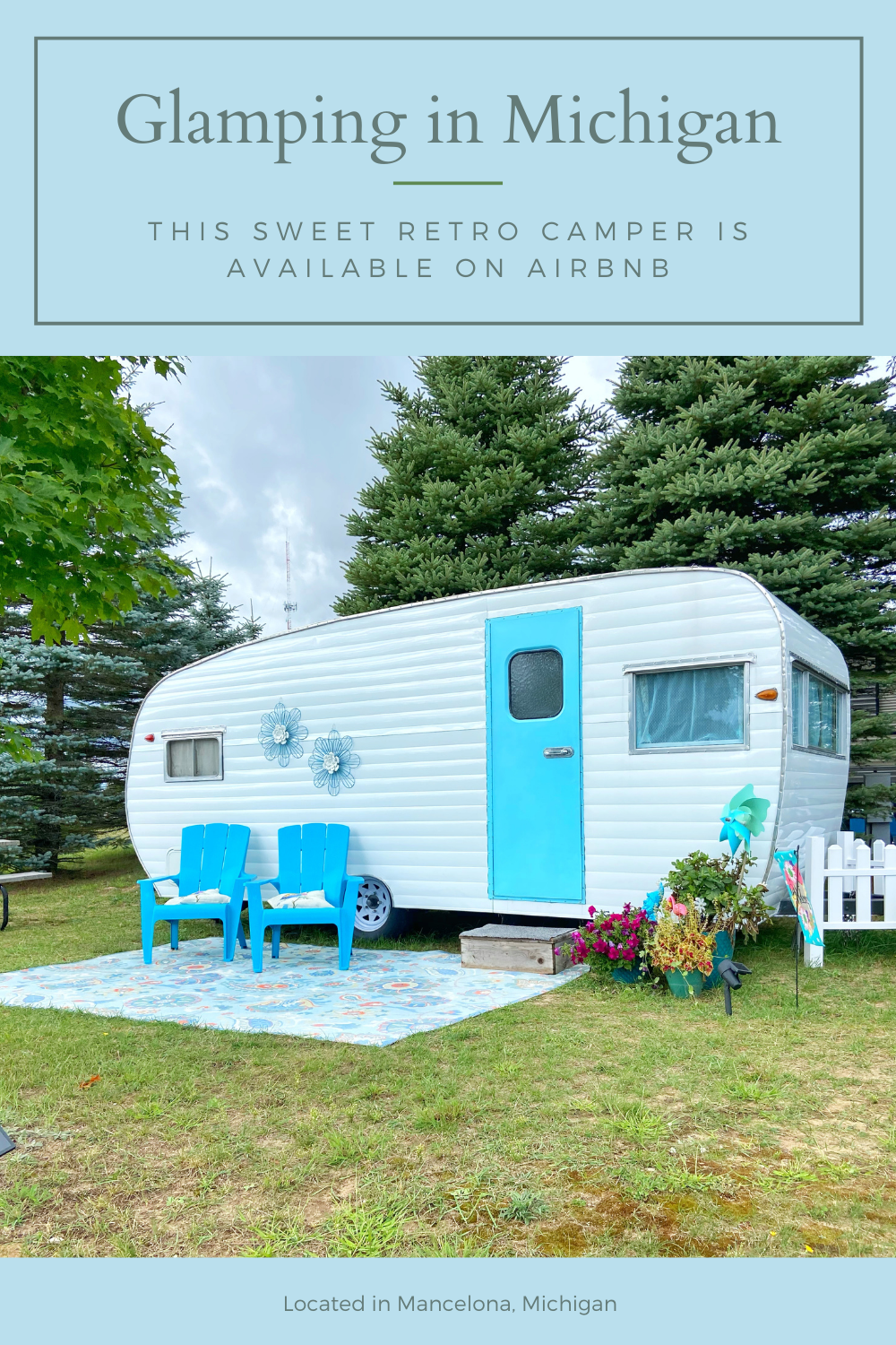 I stepped back in time when I stayed in this adorable 1964 vintage camper. The camper is located at a quiet and scenic northern Michigan campground that is out in what feels like the middle of nowhere. The camper is fully equipped with everything you need for the perfect stay.