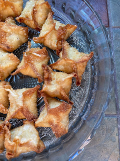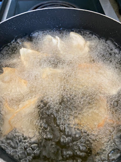 7. Fry 4-5 crab rangoons at a time, for about 45 seconds to one minute. Or until golden brown.