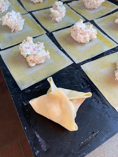 4. Moisten the edges of the wonton with an egg wash (egg/water mixture).