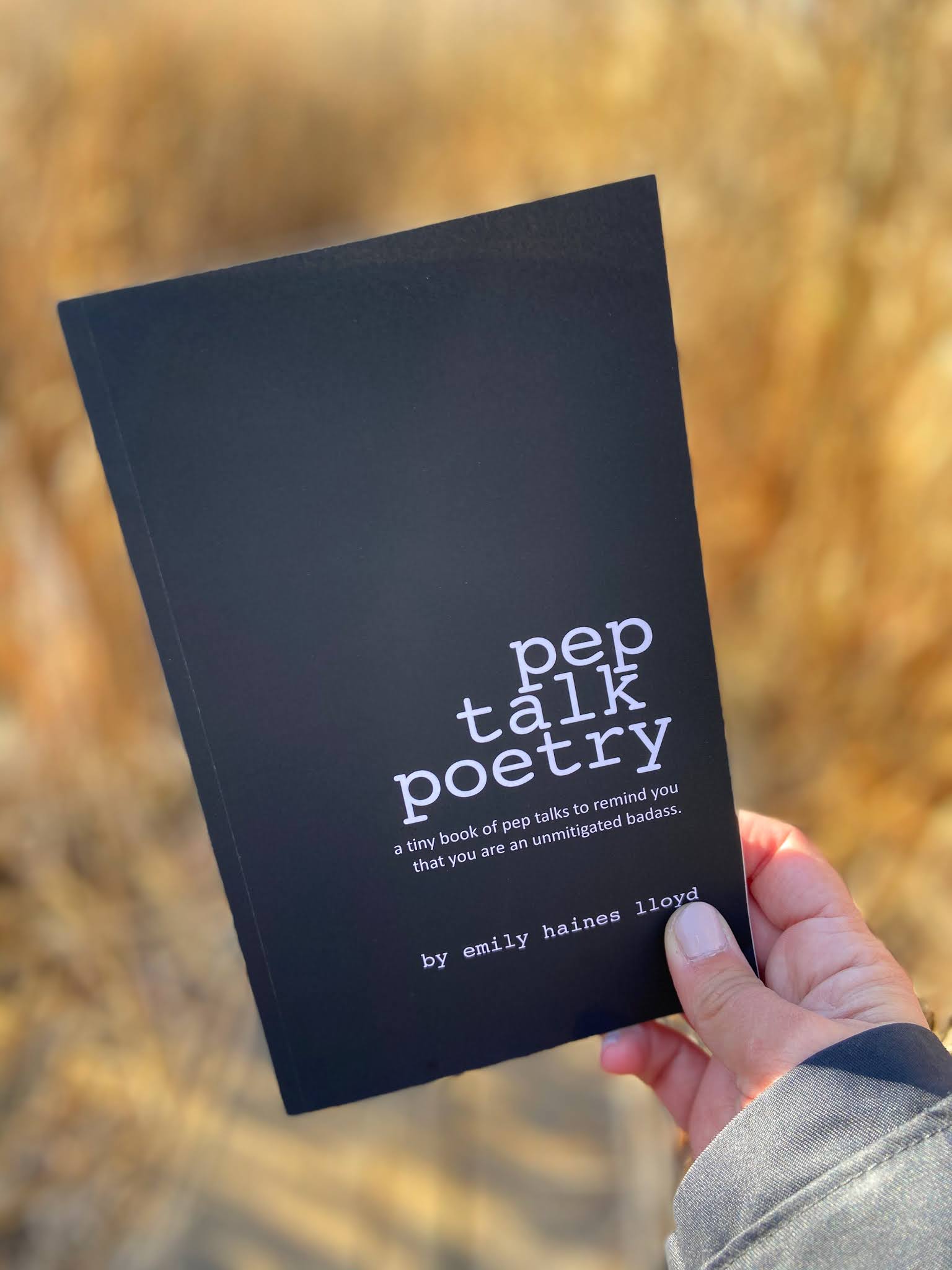 Pep Talk Poetry is written by Emily Haines Lloyd and features a collection of pep talks to remind you that you\’re an unmitigated badass.