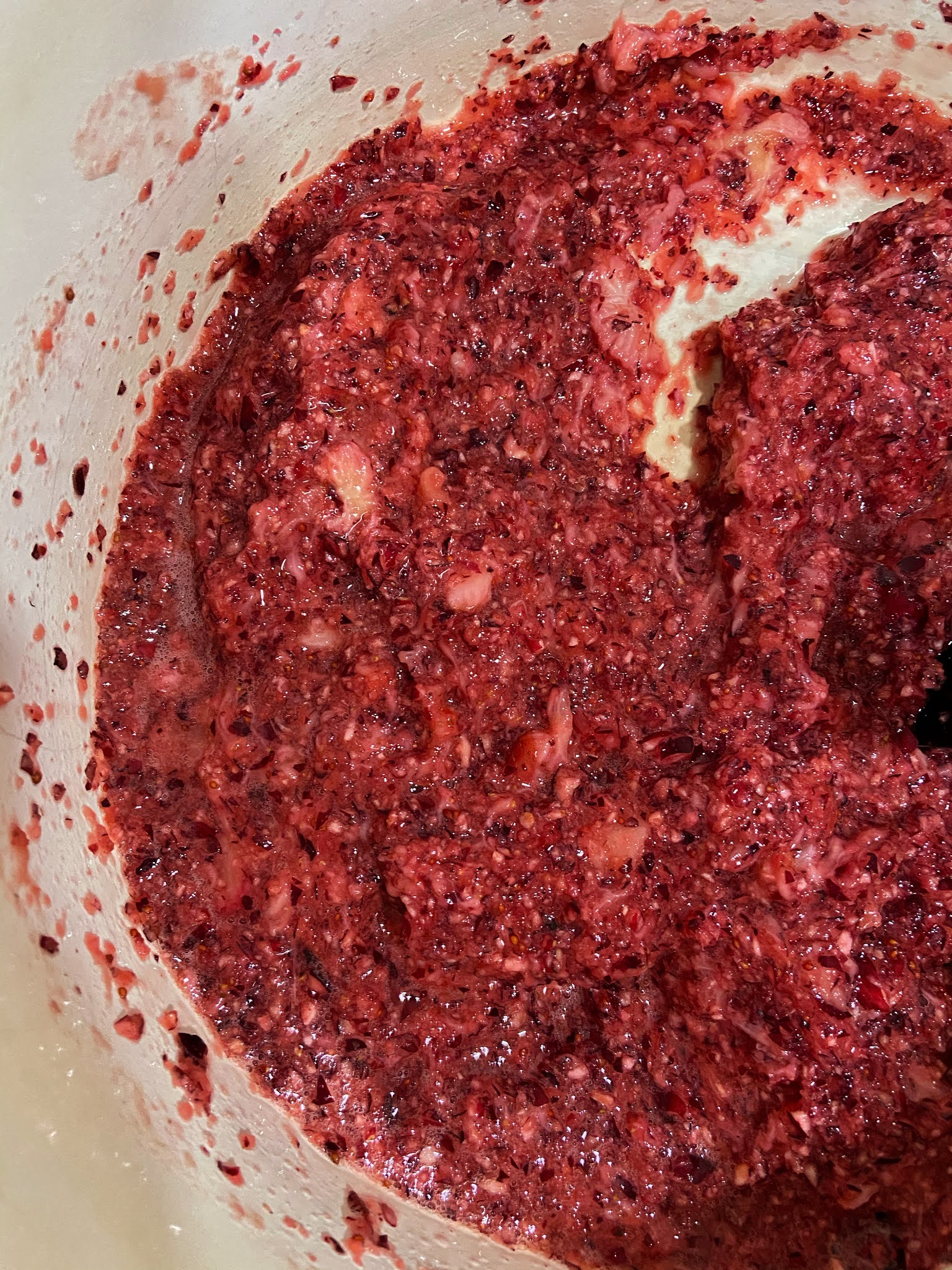 You can use fresh or frozen fruit in this recipe. I actually had some strawberries from this summer left in the freezer, so I just thawed them out to make this recipe. We have a few cranberry bogs around Michigan, and we typically start to see fresh cranberries in stores come October. As I mentioned above, the longer the jam sits the better it is, therefore if you want to make it in October and give it in December that would be perfect.