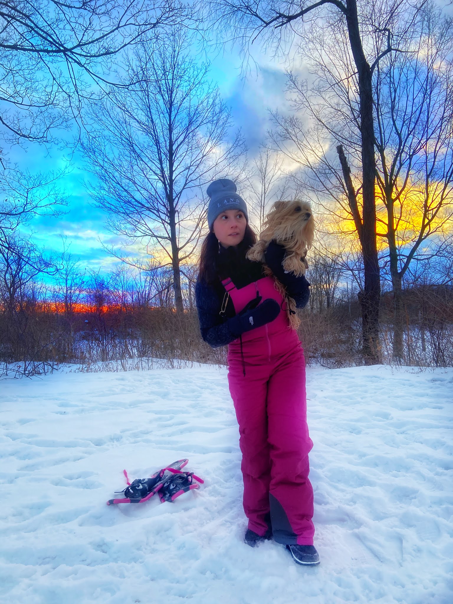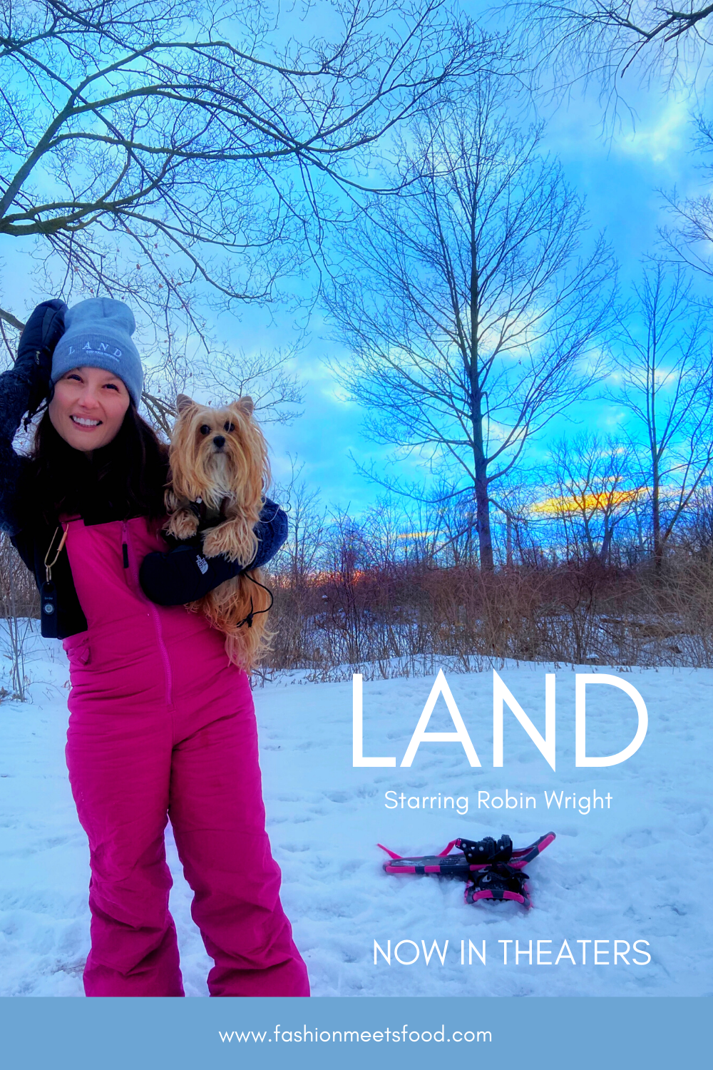 review about LAND starring Robin Wright. Focus Features was kind enough to end me some goodies in honor of the release of LAND (2/12), and I had to get outside with the Carhartt beanie immediately for a snowshoeing adventure with Jack.