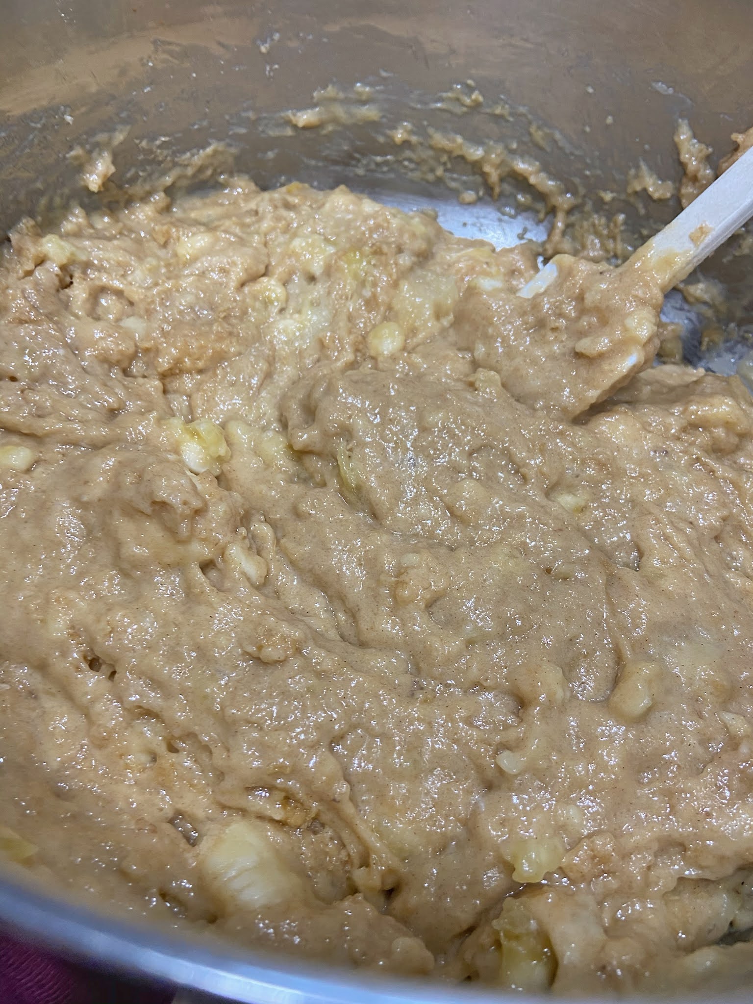 2. Separately combine all wet ingredients together, mixing in the bananas last.