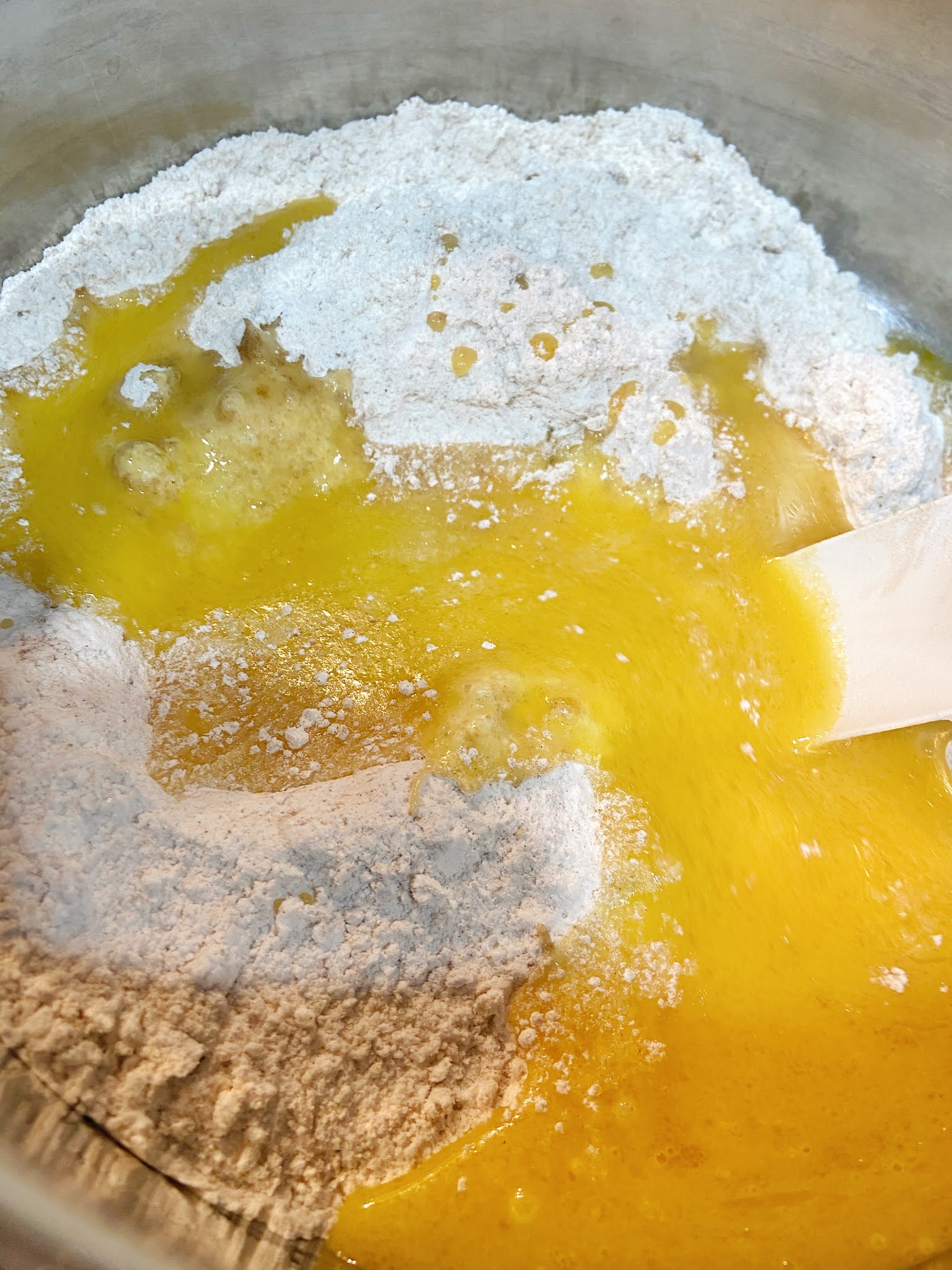3. Combine dry and wet ingredients together and mix thoroughly.
