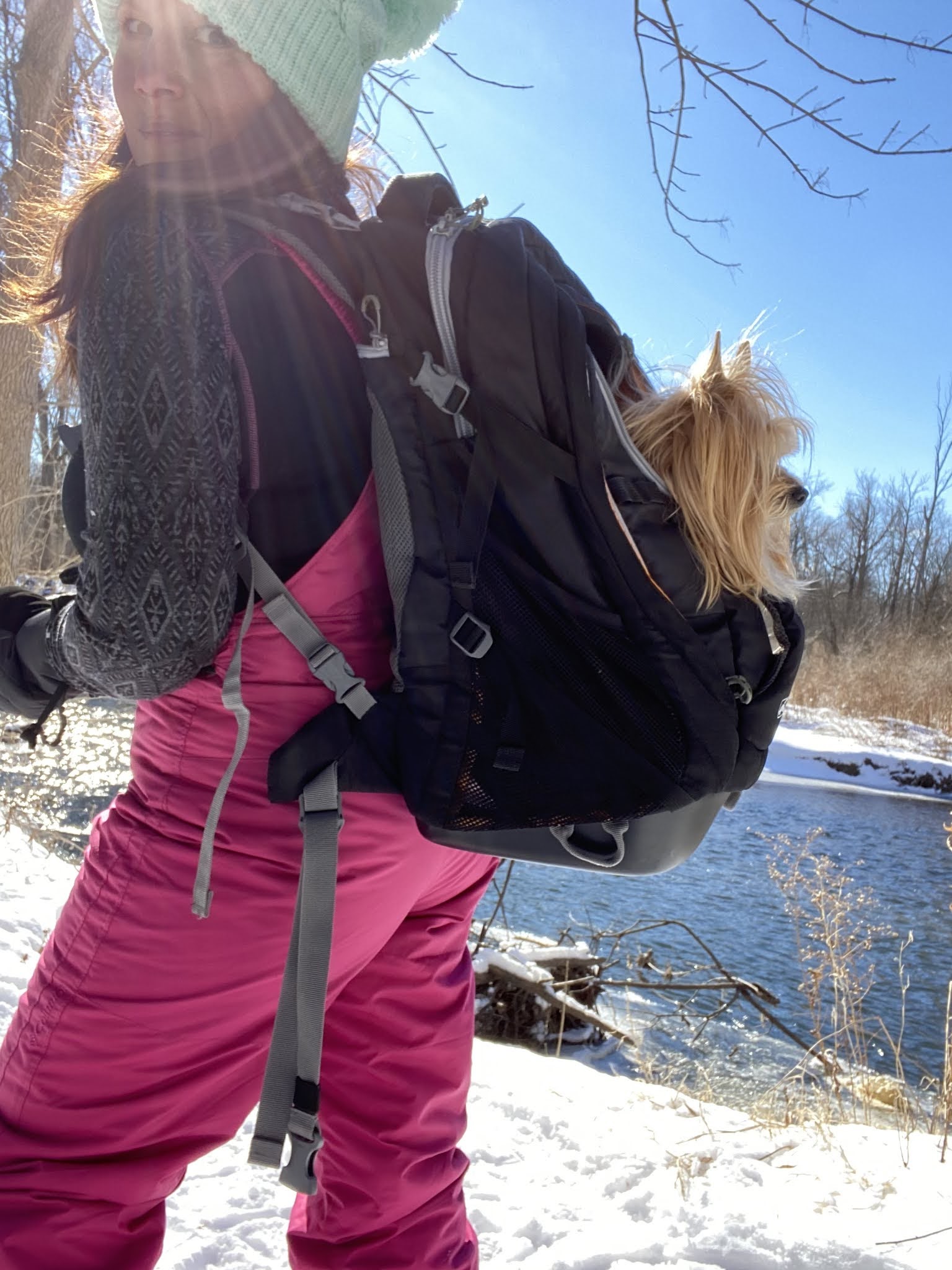 Hat, gloves, mittens: I always wear a beanie and a pair of mittens when I am out on the trail. I also always use some SPF chapstick, and moisturizer to protect me from the sun even when I can\’t see it.