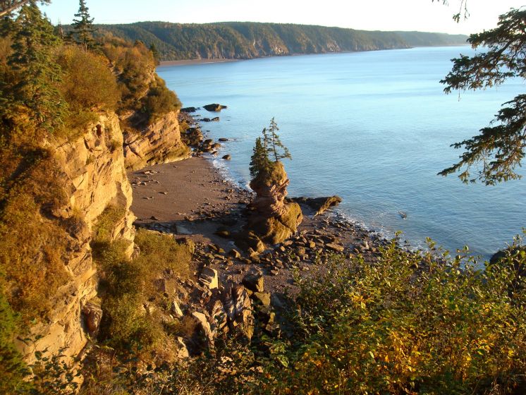 Even if you visit The Hopewell Rocks, I still feel like Flower Pot Rock is a must-see destination in the Fundy Trail Parkway. If you follow Flowerpot Scenic trail at Fownes Head you will see Fundy Trail’s beloved flowerpot rock. Named because of the tuft of vegetation that grows on their tops, the proper term for the formation is a sea stack. This is one stage that occurs during the process of coastal erosion.
