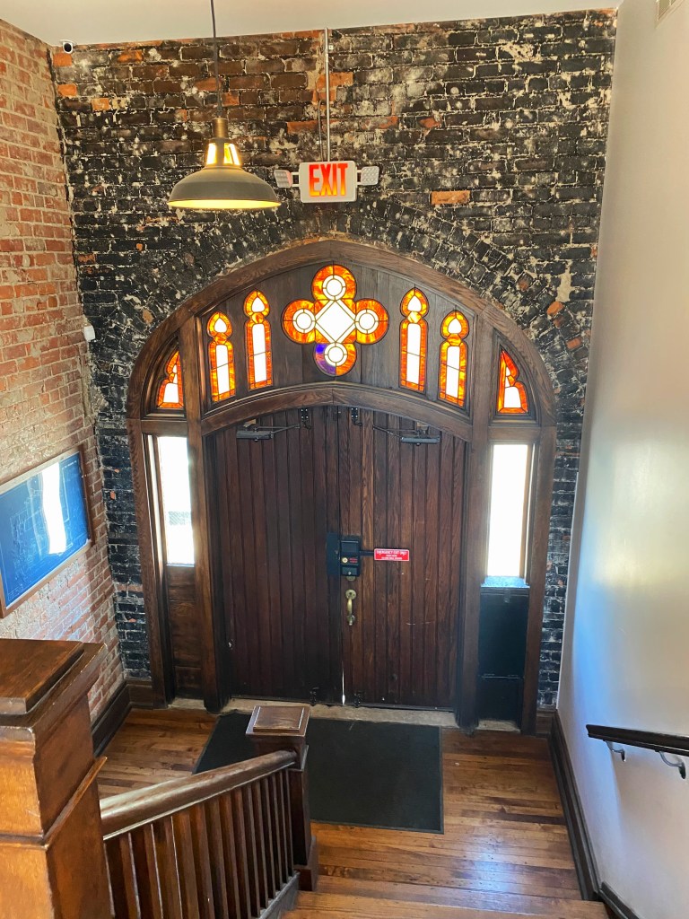 This church stands the true test of time. One block North of the origination of the 1967 Rebellion, the church remained intact and undisturbed. At some point between the 1950s and 1960s, the original stained glass feature window was removed and blocked up. The goal when restoring and renovating the structure was to install a modern interpretation of what once was there. The new feature window installed in early 2020, is a stainless steel art piece built by The Nordin Brothers of Detroit.