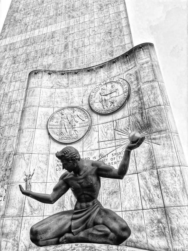 Next, we made our way to the Spirit of Detroit, one of the city’s most famous sculptures. The Spirit of Detroit is a symbol of hope, human progress, and unity, featuring a figure holding a golden disc representing God and a family symbolizing humanity. This powerful piece of art is not just a must-see for visitors, but it also holds a special place in the hearts of Detroiters.