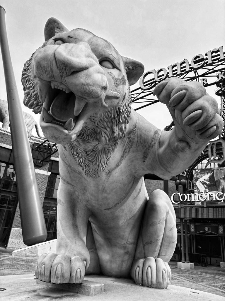 As sports lovers, we couldn’t leave Detroit without stopping by Comerica Park to check out the iconic Tiger statue outside the ballpark. Known as one of the most recognizable landmarks in Detroit, the enormous tiger statue is a beloved symbol of the city’s history and love for baseball.