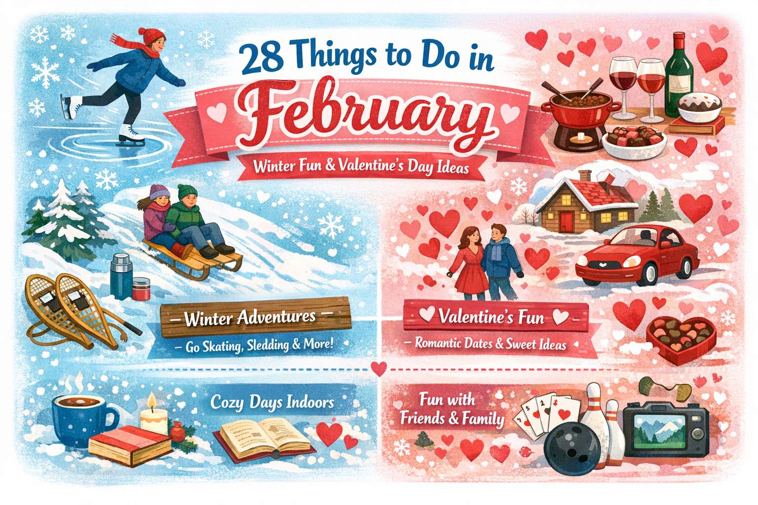 February may be the shortest month of the year, but it’s packed with opportunities to have fun, stay cozy, and make meaningful memories. From classic winter activities to romantic Valentine’s Day ideas, there are plenty of ways to embrace the season, whether you love the cold or prefer staying warm indoors.