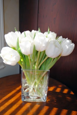 No matter what the time of year is you don’t have to spend a lot in order to have beautiful, fresh flowers around the house. Think beyond the elaborate bouquets and instead purchase one type of flower that is in season (I just bought a dozen tulips for six dollars), or buy something such as carnations that typically sell for about five dollars a dozen year round. When flowers are bunched together tightly and placed into a small vase the outcome is chic and stylish.