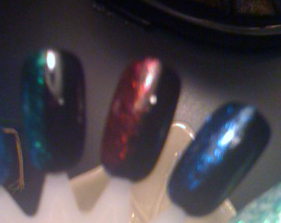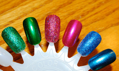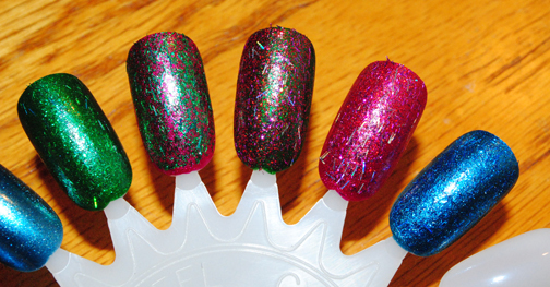 The glitter glazes; Rina, Kssy and Twila feature tinsel like pieces in them.