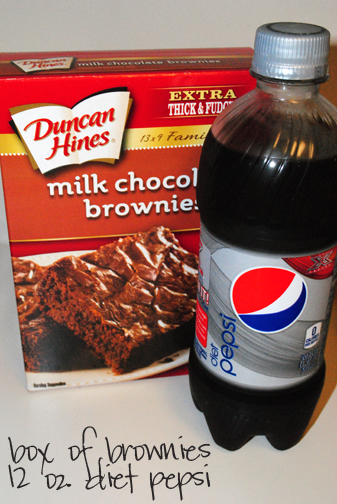 My Skinny Funfetti Cupcakes were such a hit I just had to share with you my recipe for Skinny Brownies. The recipe is super simple – mix one can (12 ounces) of Diet Pepsi with one box of brownies and bake at 325 for 20-30 minutes or until a toothpick inserted in the middle comes out clean. *note: I do not drink pop – I only use it in recipes. Therefore instead of buying a case and having cans I just buy a 20 oz. bottle at the grocery store and measure out 12 ounces. *