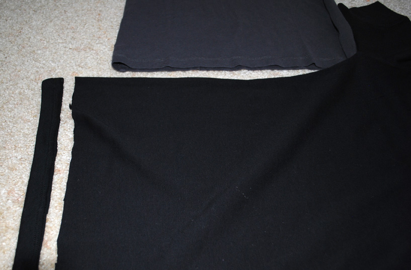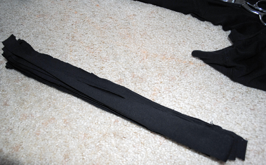 Cut the t-shirt into strips up to the arm pit.