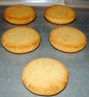 • Place dough on a lightly floured surface and roll out to about 1/8 of an inch in thickness. Using a round cookie cutter stamp out your cookies. You can even stamp out the centers if you wish. Place your cookies on a parchment lined baking sheet.