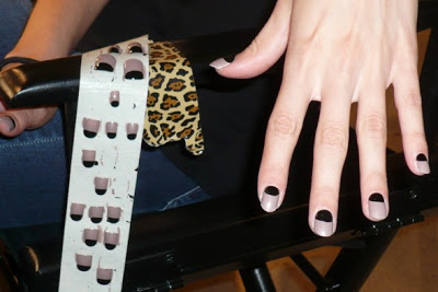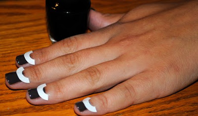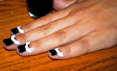 {Dashing Diva polish used: The Met, a white polish, for a base and Limo Service, a black polish to create a Chevron French nail.}