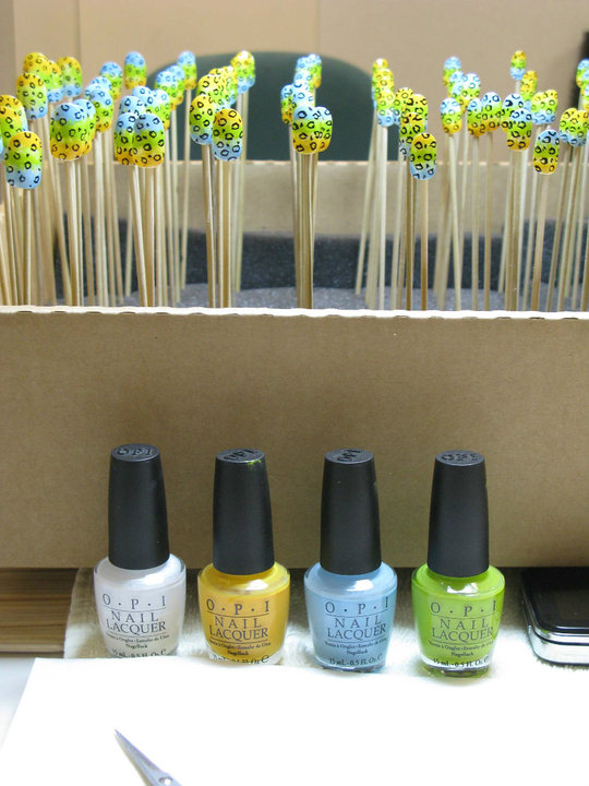 {OPI nail polish used: Alpine Snow, The \”It\” Color, What\’s with the Cattitude, Who the Shrek are You? and Black Onyx were used to create a bold cheetah design. }